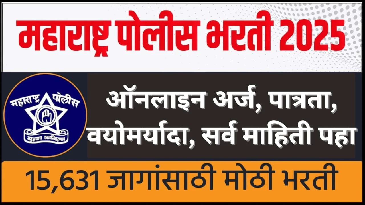 महाराष्ट्र पोलीस भरती 2025: 15,500+ पदांची सुवर्णसंधी, ऑनलाइन अर्ज सुरू! maharashtra police bharti 2025 :- महाराष्ट्रातील तरुण आणि तरुणींसाठी एक अतिशय आनंदाची आणि अपेक्षित बातमी आहे. …